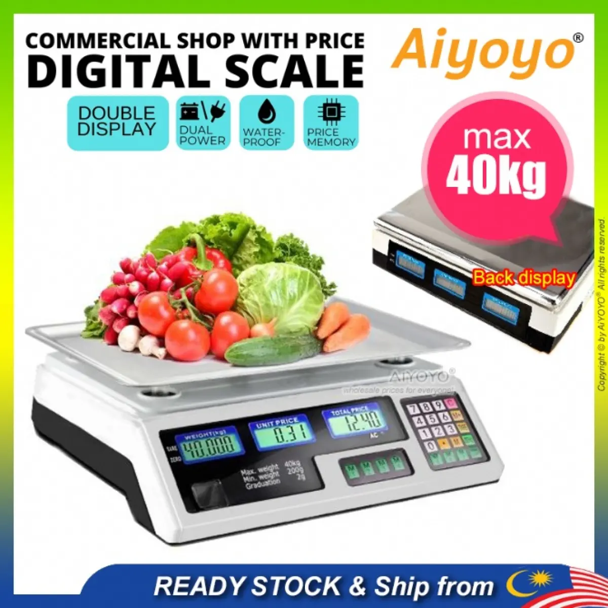 40kg Electronic Digital Scale Weight Scale Price Computing Penimbang Harga Timbang Pasar Rechargeable Front Back Display Supermarket Counting Scale Kitchen Scale Grocery Food Meat Lazada